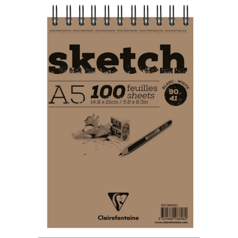 Skitseblok fra Clairefontaine med 90 g syrefrit, hvidt papir. Ideel til blyant, kul og farveblyanter. Perfekt til skitser og daglig tegning.