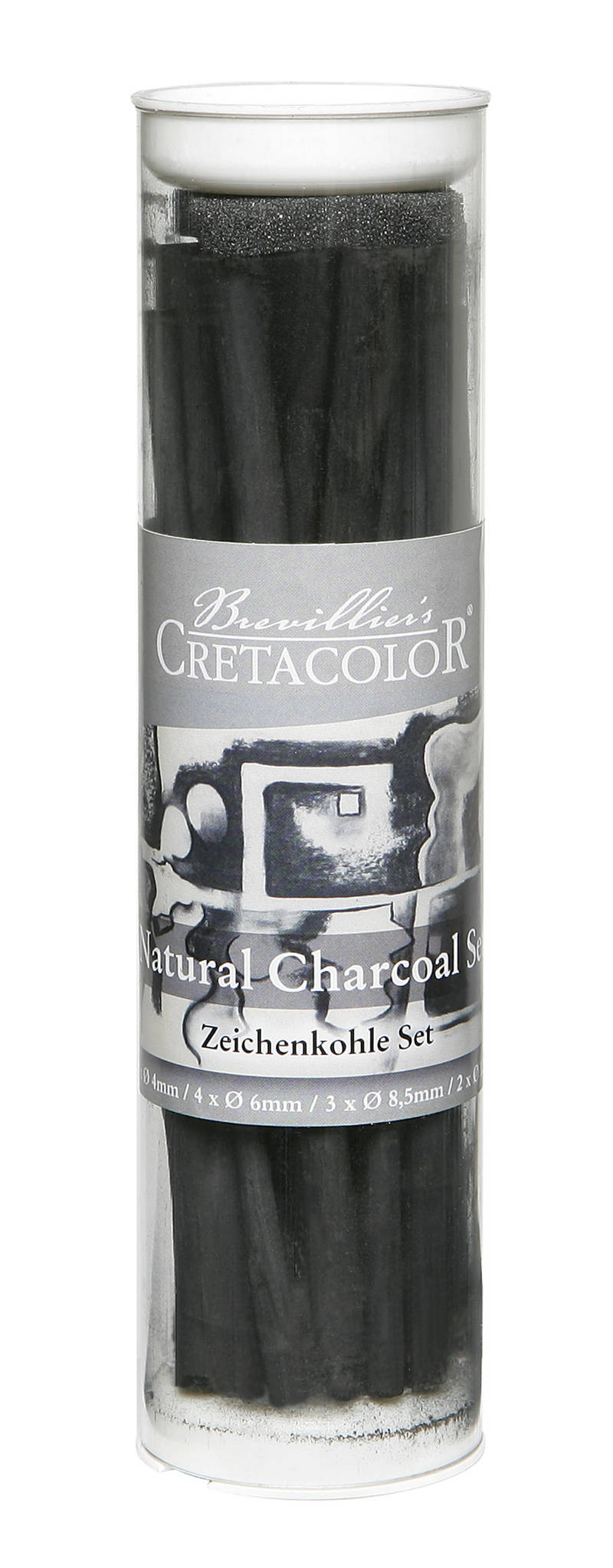 Sættet indeholder en assorteret blandeing a trækul pinde i diameterene 4mm, 6mm, 8.5mm og 12mm.