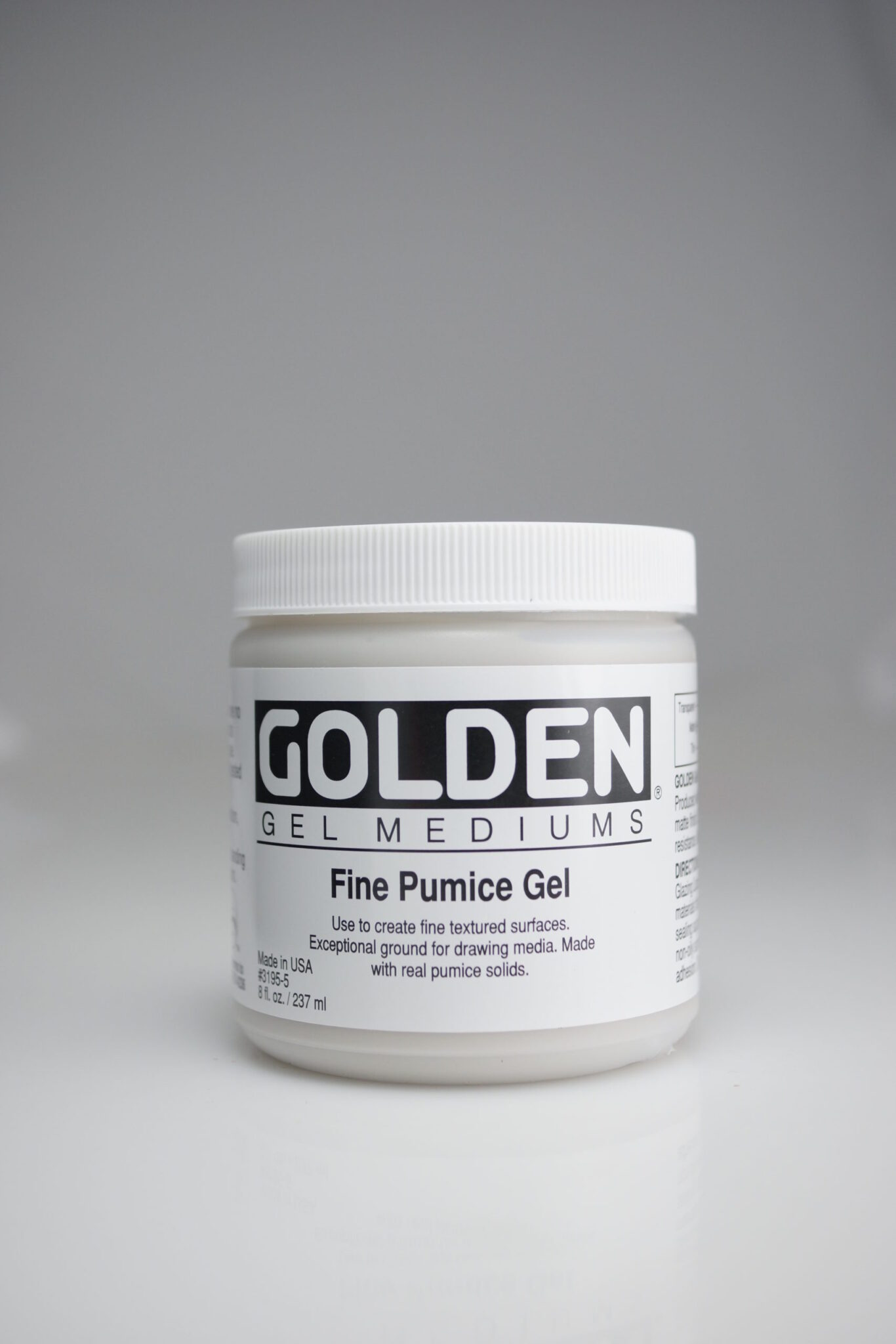 Golden Pumice Gels giver forskellige grader af grynet struktur, som giver en hård overflade. Graden af smidighed og vedhæftning kan øges ved at man blander dem med andre GOLDEN gels og malemidler. Pumice Gels og GOLDEN acrylfarver arbejder godt sammen. Fine Pumice Gel kan bruges, når man vil opnå en fin, struktureret overflade og er i øvrigt også velegnet som malegrund for pasteller.