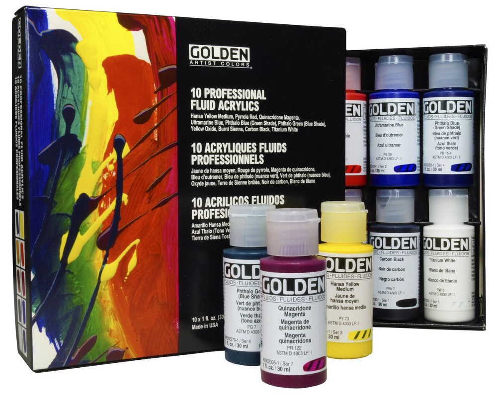 Forside / Shop / Hoppymaling / Startsæt / Golden Prof. Fluid Acryl 10stk Sæt