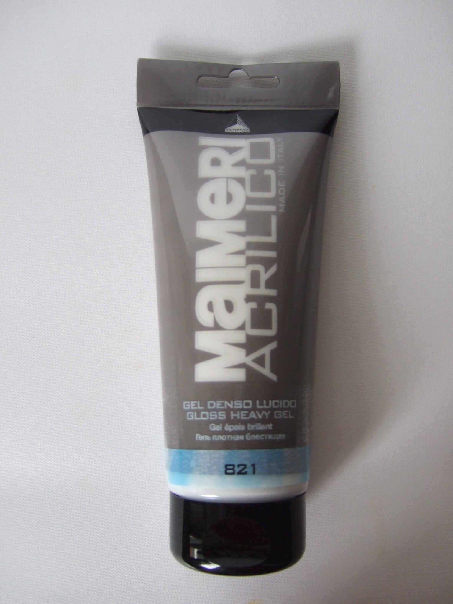 Maimeri Acrilico Gloss Heavy Gel Gelen kan blandes med acryl maling eller påføres direkte på overfladen af billedet for at animere farver og få dem til at gløde. Blandet med acryl maling gør gelen det lettere at forme denne. Gelen øger også malingens volumen hvilket er ideelt til at male store flader.