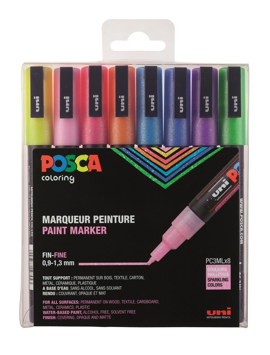Sæt med 8 stk glitter posca i størrelse 1,5mm(PC3M)