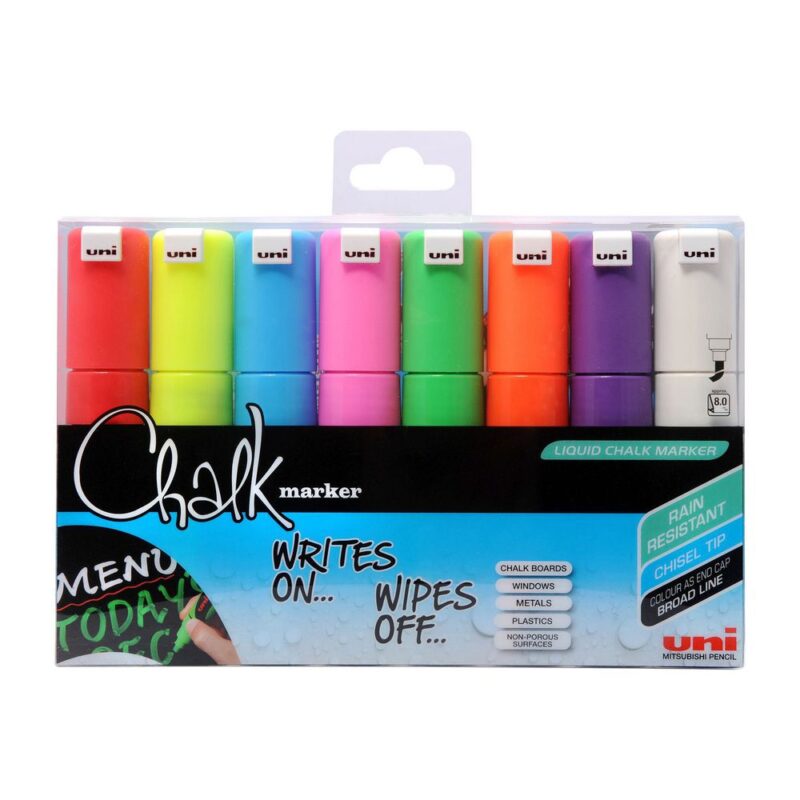 Forside / Shop / Tegneartikler / Markers/Tusser / Posca / Uni Chalk sæt 8 stk PWE-8K